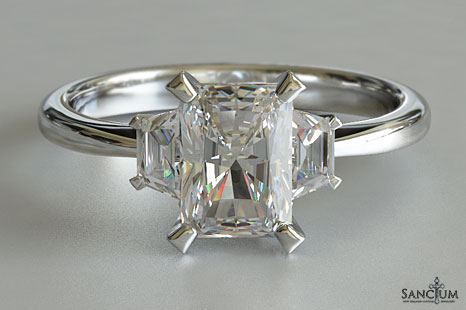 Radiant Diamond Three Stone Engagement Ring Radiant Cut 3-stone Diamond Engagement Ring with trapezoid cut diamond side diamonds available in white gold or platinum Ref: Engagement Rings 130086D-283