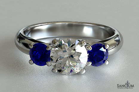 Diamond and Sapphire Three-stone Lucida Style Engagement Ring Three-stone brilliant cut diamond and sapphire side stones engagement ring with a Lucida-style crossover setting in white gold or platinum Ref: Three-stone Engagement Rings 20130108D-SP-347