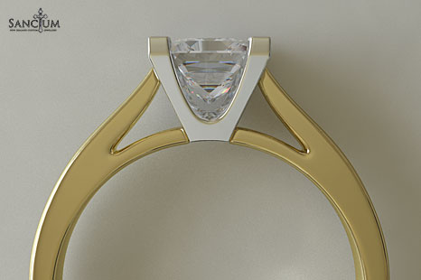 Yellow Gold Princess Diamond Solitaire Engagement Ring Semi-rubover An 18kt yellow gold Princess Cut Solitaire Diamond Engagement Ring with Semi-rubover Setting in White 18kt Gold with slightly tapering shank Ref: Solitaire Engagement Rings 130095D-YG-299